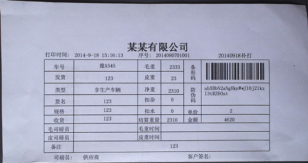 4 打印次數控制:衡安稱重軟件有嚴格的打印次數控制功能,補打需要導授權授權.